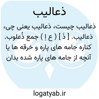 ذعالیب. [ ذَ ] ( ع اِ ) جمع ذُعلوب. کناره جامه های پاره و خرقه ها یا آنچه از جامه های پاره شده بدان آویزان باشد. جامه های کهنه. جامه های خَلَق: