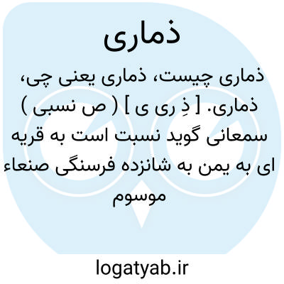 ذماری. [ ذِ ری ی ] ( ص نسبی ) سمعانی گوید نسبت است به قریه ای به یمن به شانزده فرسنگی صنعاء موسوم به ذمار. و حکی ان الأسود العبسی کان معه شیطانان یقال لأحدهما سحیق و للاخر شقیق، کانا یخبرانه بکل شی یحدث من امرالنّاس فسار الأسود حتّی اخذ ذمار و کان باذان اذ ذاک مریضاً بصنعاء فجاء الرسول فقال: «خدایگان باذان ! [ اسود ] ذمار گرفت » قال باذان و هو فی [ بیاض «]اسب زین و اشتر پالان و اشتاب بی درنگ » فکان ذلک آخر کلام تکلم به حتّی مات. فجاء الأسود شیطانه فی اعصار من الریح فاخبره بموت باذان و هو فی قصر ذمار فنادی الاسود فی قومه یا آل عامر و حاسر [ حمیر؟ ] فخذوا من مراد ان سحیقا قد ادارذمار و اباح لکم صنعاء فارکبوا و عجلّوا فسار الأسود و من معه من عبس و بنی عامر و حمیر حتّی نزل بهم.