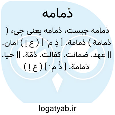 ( ذمامة ) ذمامة. [ ذِ م َ ] ( ع اِ ) امان. || عهد. ضمانت. کفالت. ذمّة. || حیا.