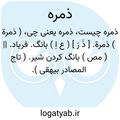 لغت نامه دهخدا ( ذمرة ) ذمرة. [ ذَ رَ ] ( ع اِ ) بانگ. فریاد. || ( مص ) بانگ کردن شیر. ( تاج المصادر بیهقی ).