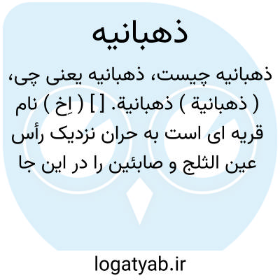 ( ذهبانیة ) ذهبانیة. [ ] ( اِخ ) نام قریه ای است به حران نزدیک رأس عین الثلج و صابئین را در این جا هیکلی بوده است. که درروزی مخصوص بزیارت و طواف آن می شدند و یاقوت گوید: موضعی است نزدیک رقة، و بدانجا مشهدی که زیارتگاه است و در آنجا نذورات آرند و موقوفاتی دارد و چشمه نهر بلیخ که در بستانهای رافقه جاری است بدانجا است.