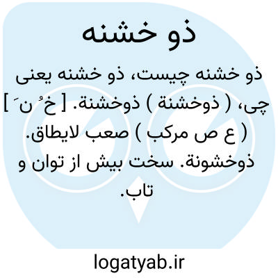 ( ذوخشنة ) ذوخشنة. [ خ ُ ن َ ] ( ع ص مرکب ) صعب لایطاق. ذوخشونة. سخت بیش از توان و تاب.