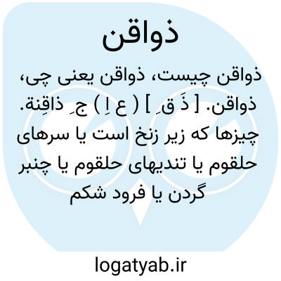 ذواقن. [ ذَ ق ِ ] ( ع اِ ) ج ِ ذاقِنة. چیزها که زیر زنخ است یا سرهای حلقوم یا تندیهای حلقوم یا چنبر گردن یا فرود شکم متصل به ناف یا چاههای سینه.