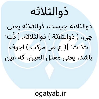 ( ذوالثلاثة ) ذوالثلاثة. [ ذُث ْ ث َ ث َ ]( ع ص مرکب ) اجوف باشد، یعنی معتل العین. که عین الفعل آن حرفی از حروف علة بود. || بعض لغت نامه نویسان گویند که ذوالثلاثة کلامی بود که آن را به سه زبان به صورت واحد و معانی مختلف توان خواند. ( و دو سه مثالی هم آورده اند که بخواندن و نوشتن نمی ارزد ).