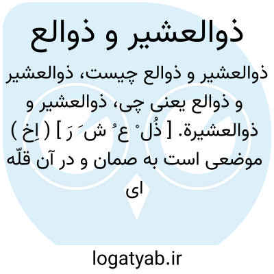 ذوالعشیر و ذوالعشیرة. [ ذُل ْ ع ُ ش َ رَ ] ( اِخ ) موضعی است به صمان و در آن قلّه ای است بلند برآمده. || موضعی است به سواد ینبع، میان مکّه و مدینه و یکی از غزوات رسول صلوات اﷲ علیه و سلّم بدانجای بود. رجوع به امتاع الاسماع جزو 1 ص 55 شود. و ابن الأثیر در المرصع گوید عُشَیر گرد و غبار است و در جای دیگر یافت نشد.