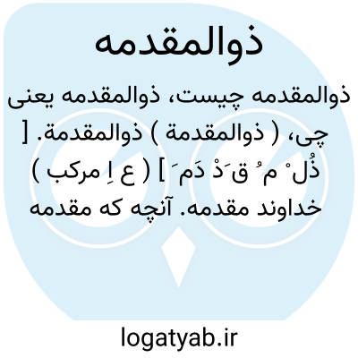 ( ذوالمقدمة ) ذوالمقدمة. [ ذُل ْ م ُ ق َدْ دَم َ ] ( ع اِ مرکب ) خداوند مقدمه. آنچه که مقدمه برای اوست. اصل امر. اصل مطلب. اصل کتاب. مقابل مقدمه.