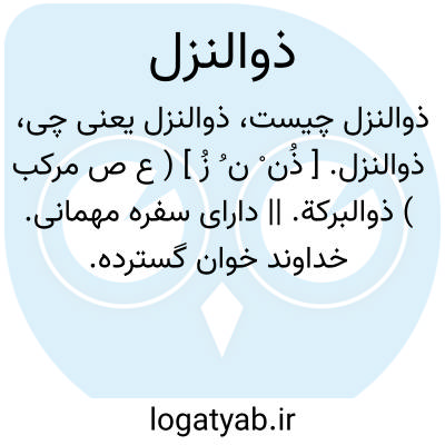 لغت نامه دهخدا ذوالنزل. [ ذُن ْ ن ُ زُ ] ( ع ص مرکب ) ذوالبرکة. || دارای سفره مهمانی. خداوند خوان گسترده.