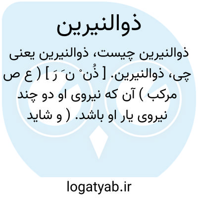ذوالنیرین. [ ذُن ْ ن َ رَ ] ( ع ص مرکب ) آن که نیروی او دو چند نیروی یار او باشد. ( و شاید این کلمه معرب از دو نیروی فارسی باشد ).
