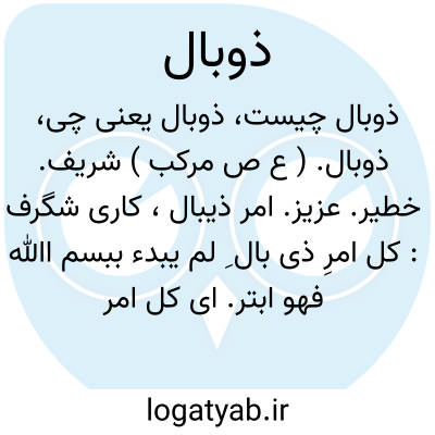 ذوبال. ( ع ص مرکب ) شریف. خطیر. عزیز. امر ذیبال، کاری شگرف: کل امرِ ذی بال ِ لم یبدء ببسم اﷲ فهو ابتر. ای کل امر ذیشأن و خطر یحتفل له و یهتم به. ( مجمع البحرین ). رجوع به بال شود.