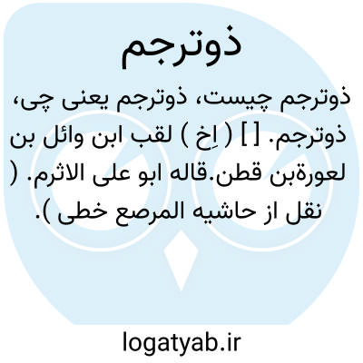 لغت نامه دهخدا ذوترجم. [ ] ( اِخ ) لقب ابن وائل بن لعورةبن قطن.قاله ابو علی الاثرم. ( نقل از حاشیه المرصع خطی ).
