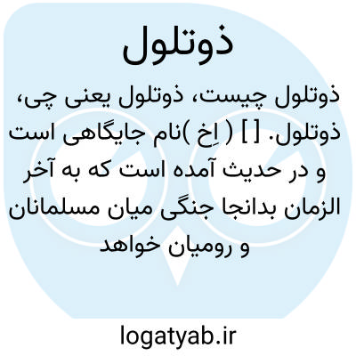 ذوتلول. [ ] ( اِخ )نام جایگاهی است و در حدیث آمده است که به آخر الزمان بدانجا جنگی میان مسلمانان و رومیان خواهد بود.