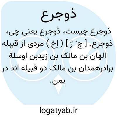 لغت نامه دهخدا ذوجرع. [ ج َ رَ ] ( اِخ ) مردی از قبیله الهان بن مالک بن زیدبن اوسلة برادرهمدان بن مالک دو قبیله اند در یمن. از تاج العروس.
