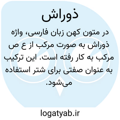در متون کهن زبان فارسی، واژۀ ذوراش به صورت مرکب از ع ص مرکب به کار رفته است. این ترکیب به عنوان صفتی برای شتر استفاده می‌شود و بر ویژگی خاصی از این حیوان دلالت دارد. کاربرد این قالب واژگانی نشان‌دهندهٔ دقت و غنای ادبی در توصیف موجودات در متون تاریخی است.