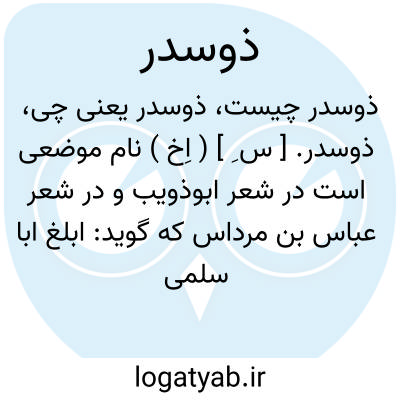 ذوسدر. [ س ِ ] ( اِخ ) نام موضعی است در شعر ابوذویب و در شعر عباس بن مرداس که گوید: