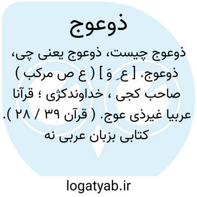 ذوعوج. [ ع ِ وَ ] ( ع ص مرکب ) صاحب کجی، خداوندکژی؛ قرآنا عربیا غیرذی عوج. ( قرآن 39 / 28 ). کتابی بزبان عربی نه صاحب کجی. ( تفسیر ابوالفتوح ج 4 ص 484 ). و در تفسیر آن گوید: قرآناً عربیاً، نصب او بر فعل مقدّر است و تقدیره اعنی قرآناً عربیاً و گفتند بر حال است علی تقدیر انزلناه قرآناً عربیاً، گفت قرآن است بلغت عرب غیرذی عِوَج که درو کژی نیست مجاهد گفت لبسی نیست عبداﷲ عباس گفت اختلافی نیست سدی گفت فرو بافته و دروغی نیست بعضی دیگر گفتند متناقض نیست و عوج بکسر کژی باشد فی الامر والدین و ما رجع الی المعانی و عوج، بفتح فی العصا و الحائط. ( ایضاً ص 488 ).