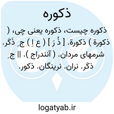 ( ذکورة ) ذکورة. [ ذُ رَ ] ( ع اِ ) ج ِ ذَکَر. شرمهای مردان. ( آنندراج ). || ج ِ ذکَر. نران. نرینگان. ذکور. ذِکار. ذِکارَه. ذُکران. ذِکَرَه. || طائفه مردان. خیل مردان. || ذکورةالطیب، و ذکارةالطیب؛ بوی خوش بی رنگ. عطری که در آن رنگ نباشد، تا مردان نیز بکار بردن توانند. خوشبوی که جامه رنگین نکند، چون عود و کافور و عنبر و مشک و غالیه و ذریره، مقابل مؤنّث طیب، مانند خلوق و زعفران.