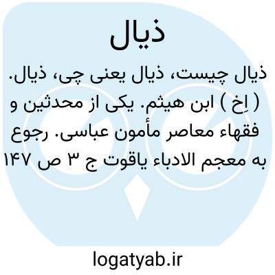ذیال. ( اِخ ) ابن هیثم. یکی از محدثین و فقهاء معاصر مأمون عباسی. رجوع به معجم الادباء یاقوت ج 3 ص 147 س 2 و رجوع به ضحی الاسلام ج ث ص 176 شود.