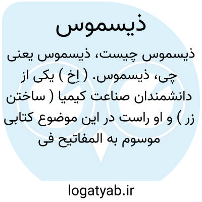 ذیسموس. ( اِخ ) یکی از دانشمندان صناعت کیمیا ( ساختن زر ) و او راست در این موضوع کتابی موسوم به المفاتیح فی الصنعة و آن حاوی چندین کتاب و رساله است و آن را سبعین رسالة نیز نامند. ( الفهرست ابن الندیم ).