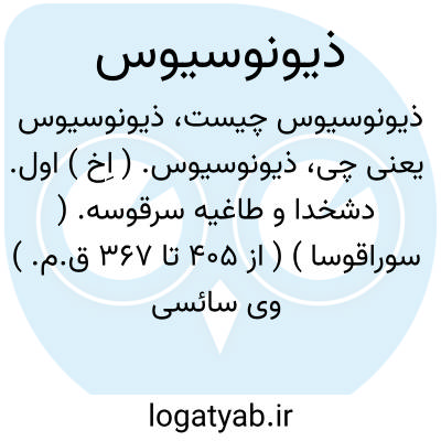ذیونوسیوس. ( اِخ ) جوان یا دویم. پسر ذیونوسیوس اول و جانشین او ( 368 ق.م. ) وی را در 358 از سرقوسه براندند. و او پس از دهسال غیبت بازگشت لکن تیمولئون بار دیگر او را تبعید کرد ( 343ق.م. ) و وی بقرنتس رفت. و در آنجا به معلمی کودکان عمر خود بپایان رسانید.
