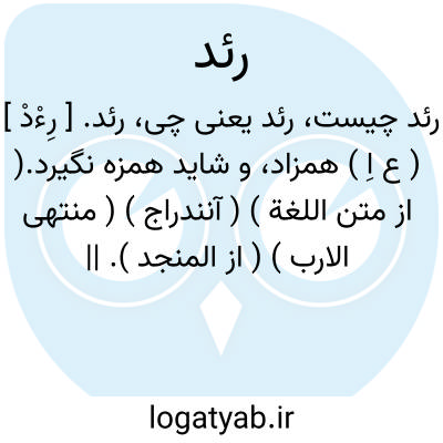 رئد. [ رِءْدْ ] ( ع اِ ) همزاد، و شاید همزه نگیرد.( از متن اللغة ) ( آنندراج ) ( منتهی الارب ) ( از المنجد ). || نزدیک به همسن. ( از متن اللغة ). || ضیق و تنگ از هر چیز. ( منتهی الارب ) ( آنندراج )( از المنجد ). || گردن یا عنق. || شاخه ای که بسیار تر و سبک باشد. ( از متن اللغة ). شاخه نورسته. شاخ نرم و نازک. || درخت آماده برای برآوردن خوشه. ( از اقرب الموارد ). ج، اَرْآد. ( اقرب الموارد )، رِئْدان. ( از متن اللغة ). درخت آماده برای برآوردن خوشه یا شاخه های نرم آن. ( از متن اللغة ). نوباوه. ( منتهی الارب ) ( آنندراج ) ( از المنجد ).
