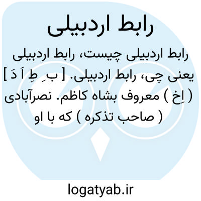 رابط اردبیلی. [ ب ِ طِ اَ دَ ] ( اِخ ) معروف بشاه کاظم. نصرآبادی ( صاحب تذکره ) که با او هم عصر بوده دیوان و شعر او را ترجمه کرده و گفته است که به هندوستان سفر کرده و دیگر از مرگ و زندگی او آگاه نیستیم و همچنین در «تذکره روز روشن ص 231» نیز آمده است. ( الذریعه ج 9 قسم 2 ). از او است: