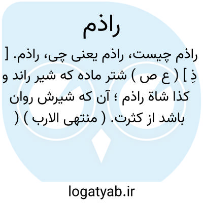 راذم. [ ذِ ] ( ع ص ) شتر ماده که شیر راند و کذا شاة راذم؛ آن که شیرش روان باشد از کثرت. ( منتهی الارب ) ( آنندراج ). ناقة راذم؛ماده شتری که شیرش را دفع کند. ( از اقرب الموارد ).