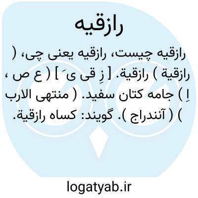 ( رازقیة ) رازقیة. [ زِ قی ی َ ] ( ع ص، اِ ) جامه کتان سفید. ( منتهی الارب ) ( آنندراج ). گویند: کساه رازقیة. ( اقرب الموارد ). || می. ( منتهی الارب ) ( از اقرب الموارد ).