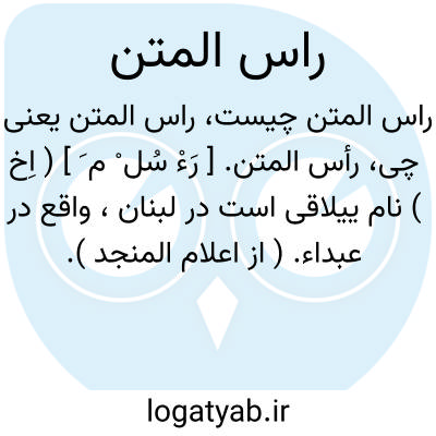 رأس المتن. [ رَءْ سُل ْ م َ ] ( اِخ ) نام ییلاقی است در لبنان، واقع در عبداء. ( از اعلام المنجد ).