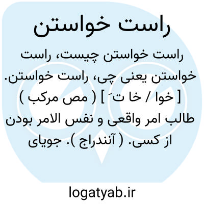 راست خواستن. [ خوا / خا ت َ ] ( مص مرکب ) طالب امر واقعی و نفس الامر بودن از کسی. ( آنندراج ). جویای راست شدن. طالب راست بودن. حقیقت خواستن: