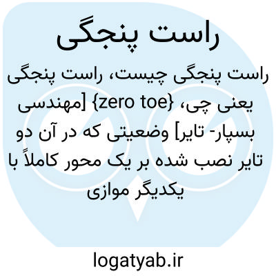 فرهنگستان زبان و ادب {zero toe} [مهندسی بسپار- تایر] وضعیتی که در آن دو تایر نصب شده بر یک محور کاملاً با یکدیگر موازی هستند