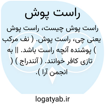 راست پوش. ( نف مرکب ) پوشنده آنچه راست باشد. || به تازی کافر خوانند. ( آنندراج ) ( انجمن آرا ). ملحد. ( ناظم الاطباء ). بمعنی کافر از ساخته های دساتیر است. ( یادداشت مولف ).