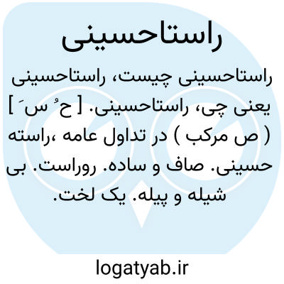 راستاحسینی. [ ح ُ س َ ] ( ص مرکب ) در تداول عامه،راسته حسینی. صاف و ساده. روراست. بی شیله و پیله. یک لخت. ظاهر و باطن یکی. رجوع به راسته حسینی شود.