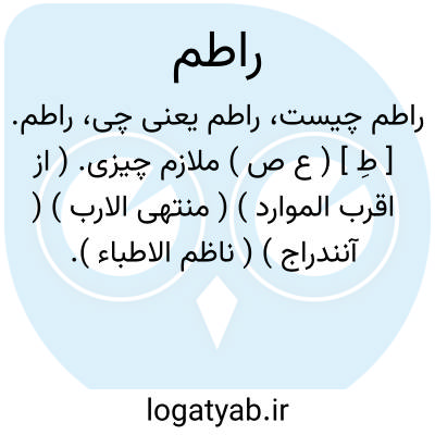 راطم. [ طِ ] ( ع ص ) ملازم چیزی. ( از اقرب الموارد ) ( منتهی الارب ) ( آنندراج ) ( ناظم الاطباء ).