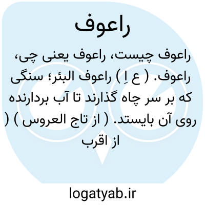 راعوف. ( ع اِ ) راعوف البئر؛ سنگی که بر سر چاه گذارند تا آب بردارنده روی آن بایستد. ( از تاج العروس ) ( از اقرب الموارد ) ( از المنجد ).