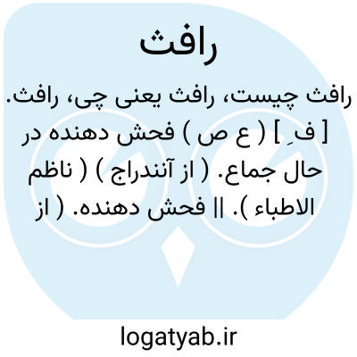 رافث. [ ف ِ ] ( ع ص ) فحش دهنده در حال جماع. ( از آنندراج ) ( ناظم الاطباء ). || فحش دهنده. ( از المنجد ) ( از آنندراج ). زن فحش دهنده. ( از ناظم الاطباء ).