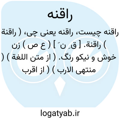 ( راقنة ) راقنة. [ ق ِ ن َ ] ( ع ص ) زن خوش و نیکو رنگ. ( از متن اللغة ) ( منتهی الارب ) ( از اقرب الموارد ) ( ناظم الاطباء ). || زن خضاب کرده. ( منتهی الارب ) ( از اقرب الموارد ) ( ناظم الاطباء ).