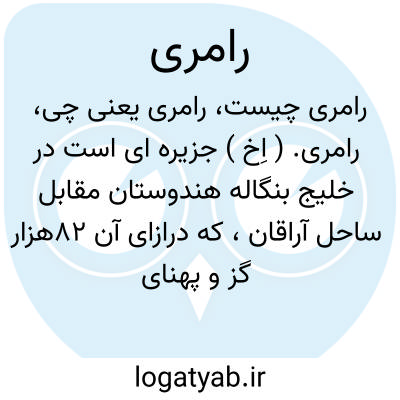 رامری. ( اِخ ) جزیره ای است در خلیج بنگاله هندوستان مقابل ساحل آراقان، که درازای آن 82هزار گز و پهنای آن بین 14هزار و 32هزار گزمیباشد. مساحت آن با جزایر کوچک شمالی آن در حدود 2095میلیون گز مربع است. ( از قاموس الاعلام ترکی ج 3 ).