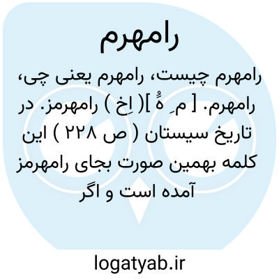 رامهرم. [ م ِ هَُ ]( اِخ ) رامهرمز. در تاریخ سیستان ( ص 228 ) این کلمه بهمین صورت بجای رامهرمز آمده است و اگر اشتباه نساخ نباشد صورتیست از نام آن شهر. رجوع به رامهرمز شود.