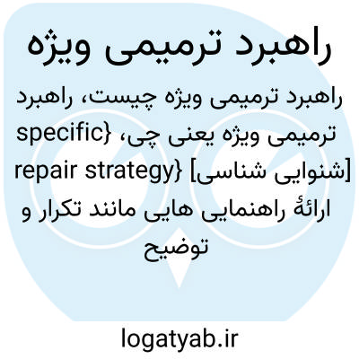 {specific repair strategy} [شنوایی شناسی] ارائۀ راهنمایی هایی مانند تکرار و توضیح به طرف دیگر ارتباط برای ترمیم ارتباط ناموفق