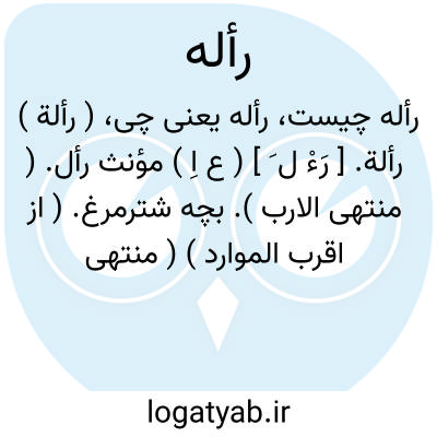 ( رألة ) رألة. [ رَءْ ل َ ] ( ع اِ ) مؤنث رأل. ( منتهی الارب ). بچه شترمرغ. ( از اقرب الموارد ) ( منتهی الارب ) ( آنندراج ) ( از المنجد ). و رجوع به رأل شود. || بچه یکساله شترمرغ. ( از اقرب الموارد ) ( منتهی الارب ) ( آنندراج ). بچه ماده یکساله آن. ( ناظم الاطباء ).