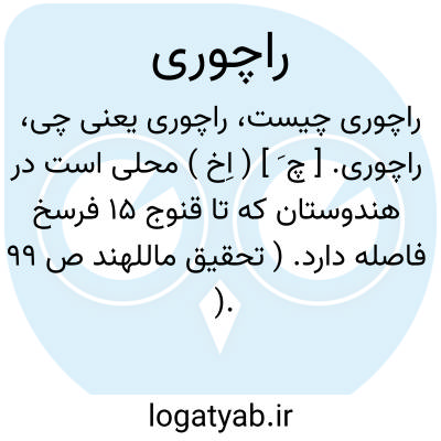 راچوری. [ چ َ ] ( اِخ ) محلی است در هندوستان که تا قنوج 15 فرسخ فاصله دارد. ( تحقیق ماللهند ص 99 ).