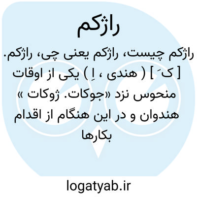 راژکم. [ ک َ ] ( هندی، اِ ) یکی از اوقات منحوس نزد «جوکات. ژوکات » هندوان و در این هنگام از اقدام بکارها خودداری کنند. رجوع بتحقیق ماللهند بیرونی ص 301 شود.