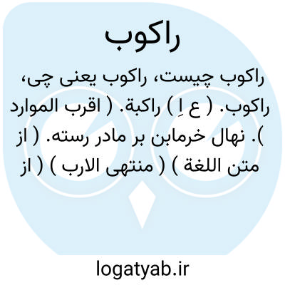 راکوب. ( ع اِ ) راکبة. ( اقرب الموارد ). نهال خرمابن بر مادر رسته. ( از متن اللغة ) ( منتهی الارب ) ( از آنندراج ) ( المنجد ) ( ناظم الاطباء ). || شاخ خرمایی بر تنه خرما برآمده. ( از متن اللغة ) ( منتهی الارب ) ( آنندراج ) ( از ناظم الاطباء ).