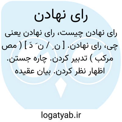 رای نهادن. [ ن ِ / ن َ دَ ] ( مص مرکب ) تدبیر کردن. چاره جستن. اظهار نظر کردن. بیان عقیده کردن: