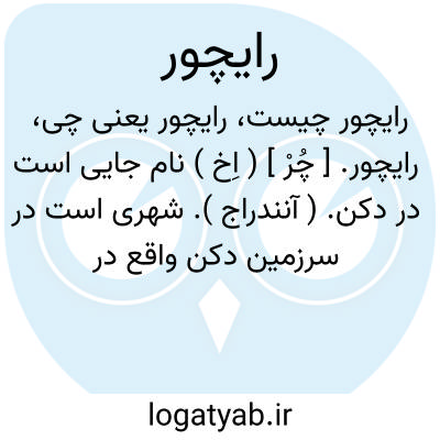 رایچور. [ چُرْ ] ( اِخ ) نام جایی است در دکن. ( آنندراج ). شهری است در سرزمین دکن واقع در 172هزارگزی جنوب باختری حیدرآباد و دارای قلعه ای بلند و عالی است. رایچور دیرگاهی پایتخت شاهان سلسله ٔبهمنی و جز آنان بوده است. ( از قاموس الاعلام ترکی ).