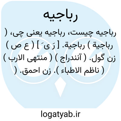 ( رباجیة ) رباجیة. [ رَ ی َ ] ( ع ص ) زن گول. ( آنندراج ) ( منتهی الارب ) ( ناظم الاطباء ). زن احمق. ( از اقرب الموارد ) ( از متن اللغة ).