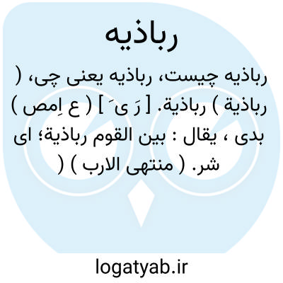 ( رباذیة ) رباذیة. [ رَ ی َ ] ( ع اِمص ) بدی، یقال: بین القوم رباذیة؛ ای شر. ( منتهی الارب ) ( آنندراج ). شر. ( اقرب الموارد ). شر و بدی. ( ناظم الاطباء ).