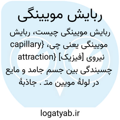 {capillary attraction} [فیزیک] نیروی چسبندگی بین جسم جامد و مایع در لولۀ مویین متـ. جاذبۀ مویینگی