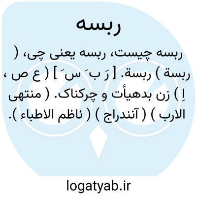( ربسة ) ربسة. [ رَ ب َ س َ ] ( ع ص، اِ ) زن بدهیأت و چرکناک. ( منتهی الارب ) ( آنندراج ) ( ناظم الاطباء ).
