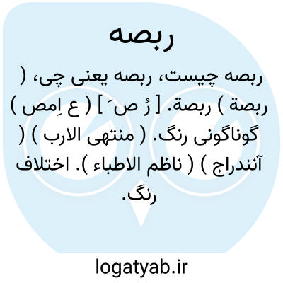 ( ربصة ) ربصة. [ رُ ص َ ] ( ع اِمص ) گوناگونی رنگ. ( منتهی الارب ) ( آنندراج ) ( ناظم الاطباء ). اختلاف رنگ. رُبْشة. ( از اقرب الموارد ). || چشم داشت. ( منتهی الارب ) ( آنندراج ) ( ناظم الاطباء ). تربّص. ( اقرب الموارد ). || مدت انتظار زن در خانه شوی وقتی که او جماع را نتواند. ( منتهی الارب ) ( ناظم الاطباء ).